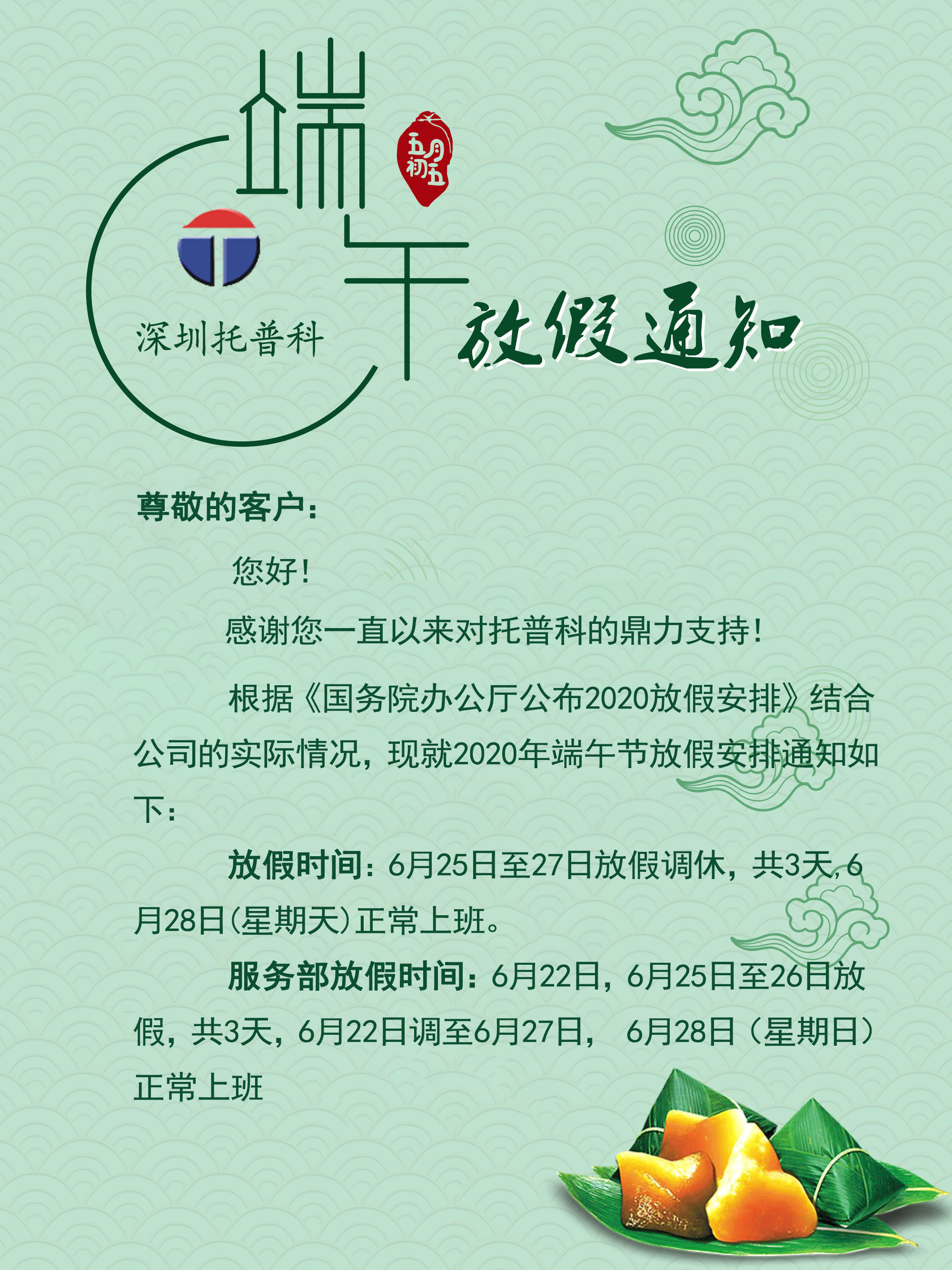 2020年端午節(jié)托普科放假公告