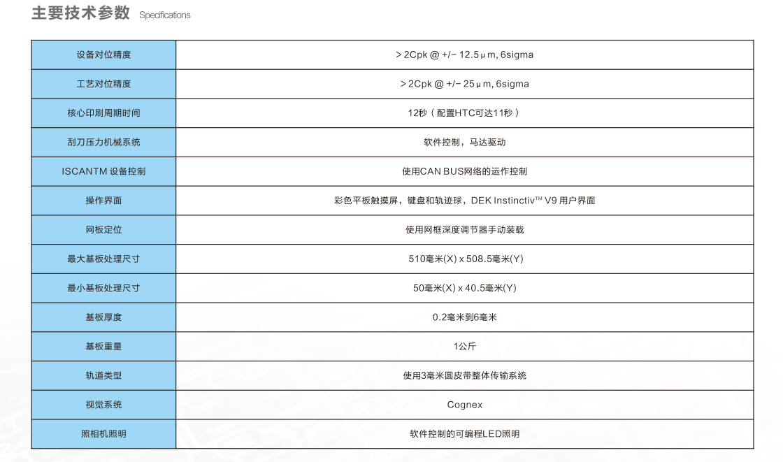 DEK全自動(dòng)絲網(wǎng)印刷機(jī)具有先進(jìn)的上視/下視視覺(jué)系統(tǒng),獨(dú)立控制與調(diào)節(jié)的照明高速移動(dòng)的鏡頭。精確地進(jìn)行PCB印刷電路板與網(wǎng)板的對(duì)位,從而將錫膏或紅膠按照網(wǎng)板的開(kāi)孔精確的涂敷在印刷電路板上。