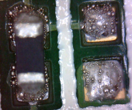 回焊溫度不足以提供錫膏完全融化的條件時,錫膏也有機會出現(xiàn)葡萄球現(xiàn)象,錫膏印刷在PCB的下錫量如果越少,那么錫膏氧化與助焊劑揮發(fā)的機會就會越高,這是因為錫膏量印刷得越少,那么錫膏與空氣接觸的比率就會越高,就較容易造成葡萄球現(xiàn)象。所以這就是0201的元件會較0603的元件更容易發(fā)生葡萄球現(xiàn)象的原因。