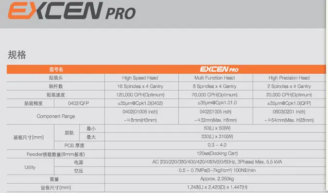 三星貼片機EXCEN PRO 配有16個吸嘴,旋轉(zhuǎn)式頭部的高速模塊式貼片機,它實現(xiàn)了世界同級產(chǎn)品中的最高速度120,000CPH,也實現(xiàn)了世界最高的面積生產(chǎn)性。另通過元器件的貼裝前·后的監(jiān)控功能(SVS:Side-view Vision System)確保了微小元器件的貼裝信賴性,通過適用不停線基種變更、不同基板混流生產(chǎn)等多種動作模式及世界最初自動接料、自動供料功能的SMART Feeder,實現(xiàn)了作業(yè)便利性和實際生產(chǎn)性極大化